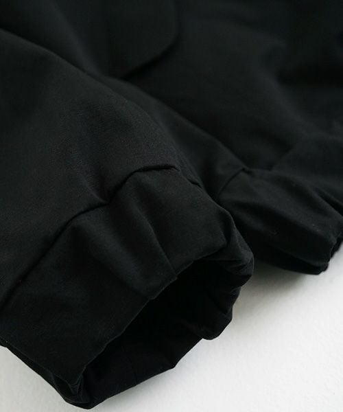 見頃はゆったりワイドデザインで着やすく、裾回りと袖周りは太めのゴムを入れてしっかり絞ってバルーンシルエットに仕上げました。