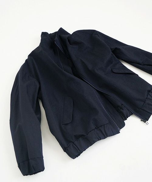 ドライタッチのコットンリネンの生地で作ったビックスタンドカラーフライトジャケット(MA-1)。