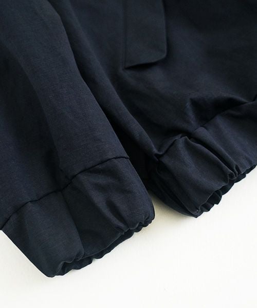 見頃はゆったりワイドデザインで着やすく、裾回りと袖周りは太めのゴムを入れてしっかり絞ってバルーンシルエットに仕上げました。