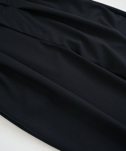 高級ウオッシャブルウールで作ったキレイな程よい光沢と落ち感のあるVU定番ワイドシルエットのテーパードパンツ。