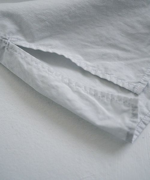 シルクコットン生地を製品染めしたワイドシルエット7分丈ドルマンスリーブスタンドカラーシャツ。