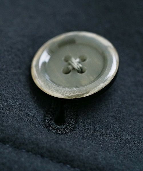 super 120's(17.5マイクロン)の上質なウール100%原料を使用する事により、滑らかさと光沢感の感じられる仕上がりの生地です。 入念に縮絨工程を行ってから押さえ工程を掛けることによりしっかりとしたコシがあり、毛羽立ちの起きにくいメルトン仕上げになっています。 尾州老舗ウール生地工場でオリジナルで作ってもらった最高の素材です。
