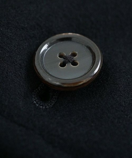 super 120's(17.5マイクロン)の上質なウール100%原料を使用する事により、滑らかさと光沢感の感じられる仕上がりの生地です。 入念に縮絨工程を行ってから押さえ工程を掛けることによりしっかりとしたコシがあり、毛羽立ちの起きにくいメルトン仕上げになっています。 尾州老舗ウール生地工場でオリジナルで作ってもらった最高の素材です。